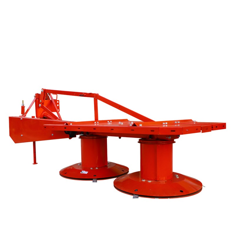 Zamontentowana kosiarka można również nazwać podwójną kosiarką. Każdy bęben ma trzy noże, które można szybko zastąpić prostymi narzędziami. Trawa przecięta przez noże jest umieszczana między dwoma bębnami, luźne miejsce. Trzy paski V przesyłają zasilanie do wału wejściowego, a następnie do głównego wału napędowego, który z kolei napędza bęben przez koło zębate. Na kosiarce bębna znajduje się urządzenie separacji, które automatycznie działa, gdy kosiarka uderzy w przeszkodę. To chroni bęben przed uszkodzeniem.